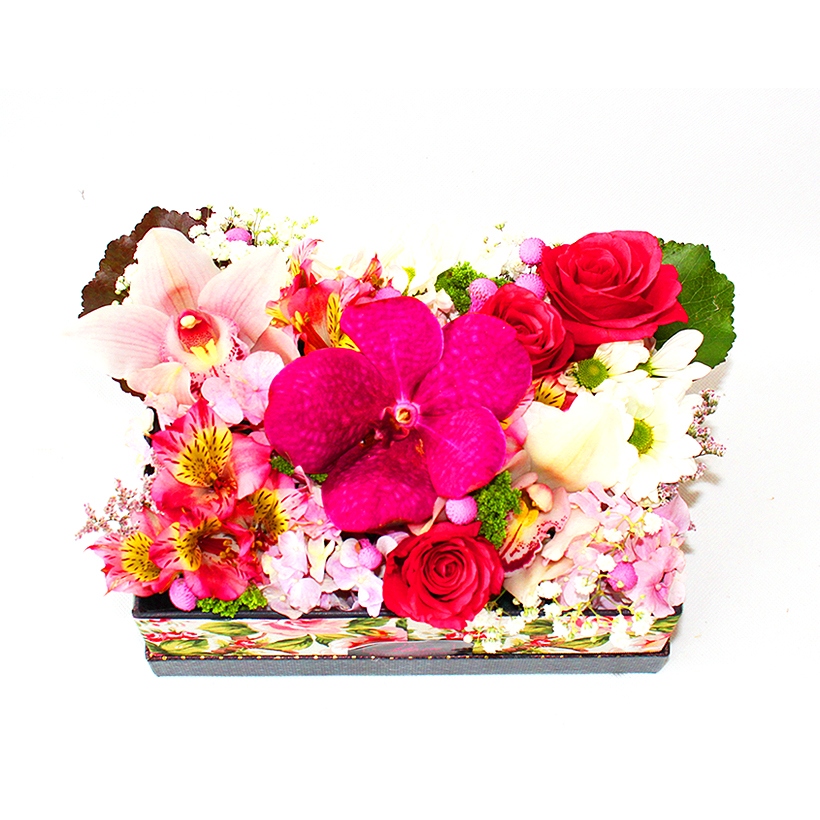 Орхидеа, хризантеми, алстромериа, рози и додатоци