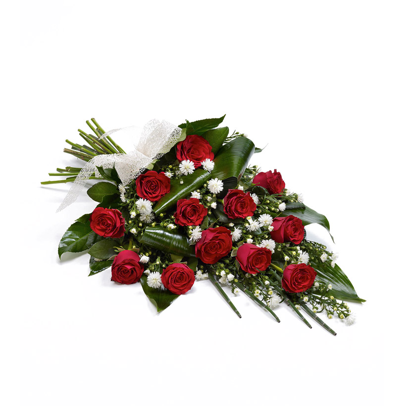 Букет со 12 рози  зеленило и сатенска машна.