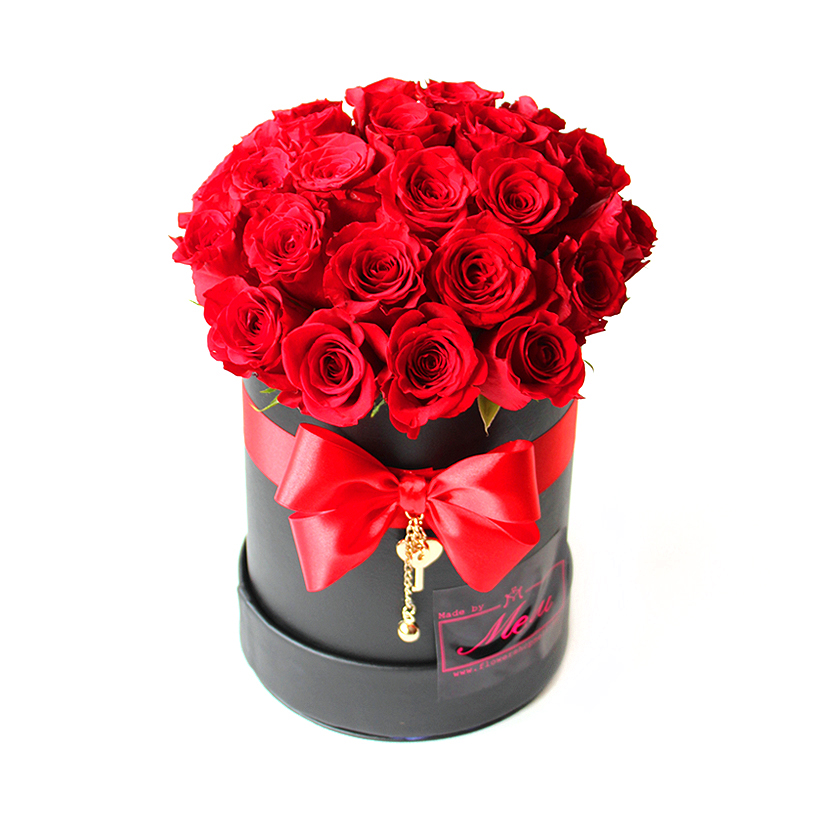 25 крупни рози во декоративна кутија со капак